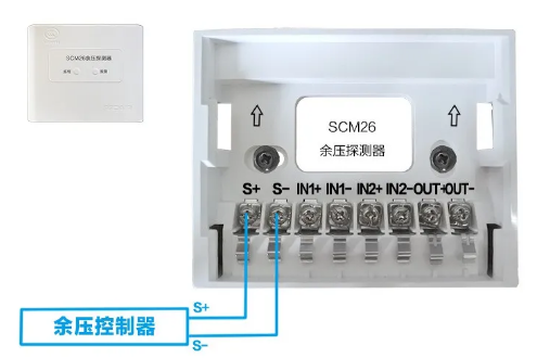 5.将"S+"、"S-"通过无极性二总线接入到余压监控器。