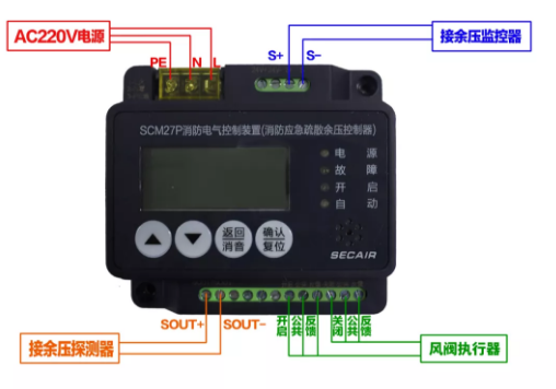 赛科余压监控系统由SCM8余压监控器,SCM26余压探测器,SCM27P余压控制器和SCM28风阀控制器组成。