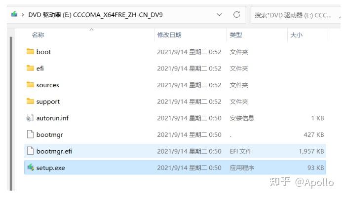 无论是加载为镜像,还是直接解压,效果基本相同。双击文件夹下的 setup.exe 启动程序开始安装系统。