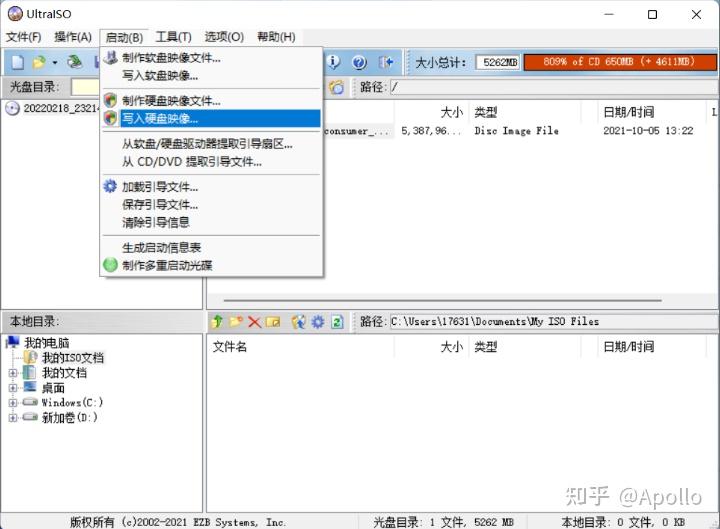 平常时,我们可以准备一款 U 盘启动盘,制作方式也很简单,直接使用软碟通等一类软件将 ISO 系统镜像文件刻录至 U 盘中即可。