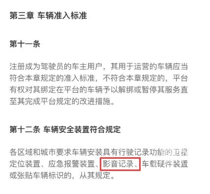 《滴滴网约车准入规则》明确:必须安装影音记录和应急报警